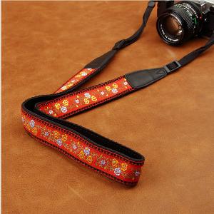- カメラストラップ コットン マルチカラー 赤系 アジアン cam-in カムイン CAM8445 おしゃれ 一眼レフ 斜めがけ ロープ 手首 紐