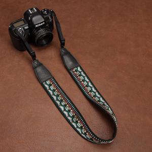 - カメラストラップ コットン マルチカラー 緑系 アジアン cam-in カムイン CAM8453 おしゃれ 一眼レフ 斜めがけ ロープ 手首 紐