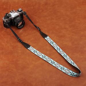 - カメラストラップ コットン マルチカラー 青系 アジアン cam-in カムイン CAM8470 おしゃれ 一眼レフ 斜めがけ ロープ 手首 紐