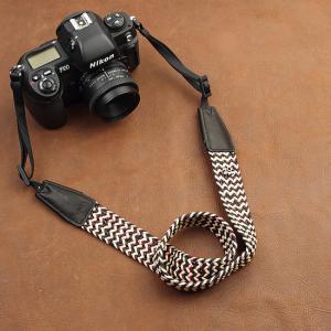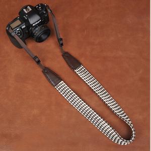 - カメラストラップ コットン ブラック・ホワイト 編み込み cam-in カムイン CAM8763 おしゃれ 一眼レフ 斜めがけ ロープ 手首 紐