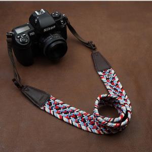 - カメラストラップ コットン マルチカラー 編み込み cam-in カムイン CAM8799 ストラップ おしゃれ 一眼レフ 斜めがけ ロープ 手首
