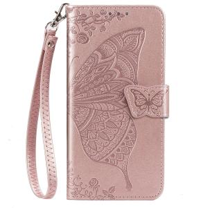 - arrows N F-51C ケース 手帳型 カバー ストラップ付 おしゃれ エンボス バタフライ スマホケース アローズN wbao ピンクゴールド