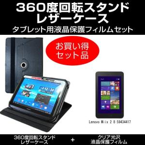 - Lenovo Miix 2 8 59434417 レザーケース 黒 と 指紋防止 クリア光沢 液晶保護フィルム のセット 互換品