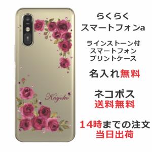 - らくらくスマートフォンa A401FC らふら 名入れ スマホケース ラインストーン スマホカバー 押し花風 ダークピンク ローズ