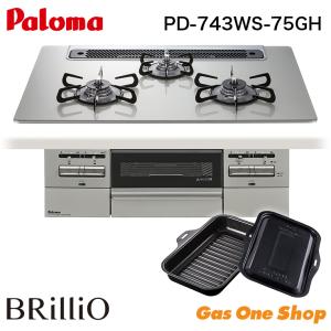 - パロマ ビルトインコンロ 75cm幅 PD-743WS-75GH 都市ガス プロパンガス ブリリオアルファ シャインシルバー