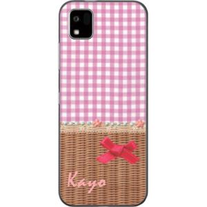 - かんたんスマホ3 ケース A205KC カバー らふら 名入れ チェックリボン
