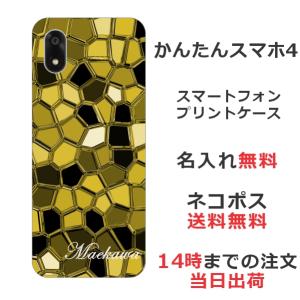 - かんたんスマホ4 A402ZT らふら 名入れ スマホケース ゴールド モザイク