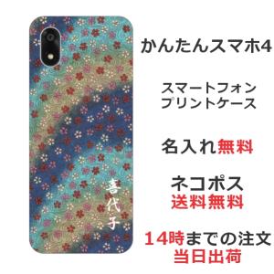 - かんたんスマホ4 A402ZT らふら 名入れ スマホケース 和柄 和小花ブルーグラデ
