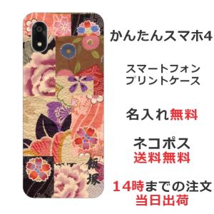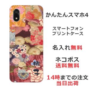 - かんたんスマホ4 A402ZT らふら 名入れ スマホケース 和柄 和花パッチワーク