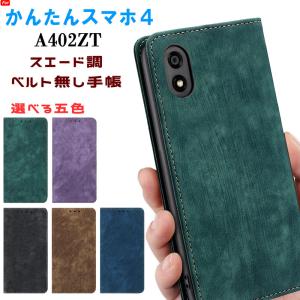 - かんたんスマホ4 ケース 手帳型 ベルト無し マグネット内蔵 スエード調素材 ストラップ穴 カード収納 爆買