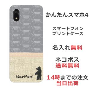 - かんたんスマホ4 A402ZT らふら 名入れ スマホケース 北欧デザイン くま