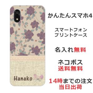 - かんたんスマホ4 A402ZT らふら 名入れ スマホケース 和柄 花 ふんわり花柄