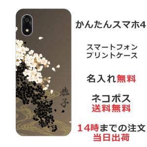 - かんたんスマホ4 A402ZT らふら 名入れ スマホケース 和柄 花 サクラ