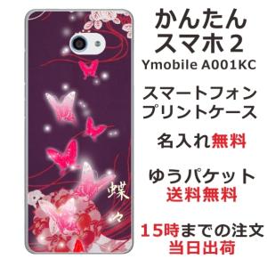 - かんたんスマホ2 ケース A001kc カバー らふら 名入れ 和柄 紫蝶々