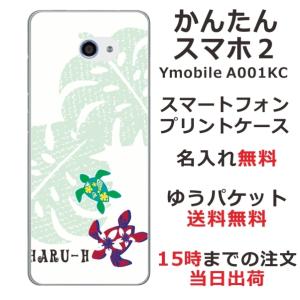 - かんたんスマホ2 ケース A001kc カバー らふら 名入れ ハワイアン ホヌ