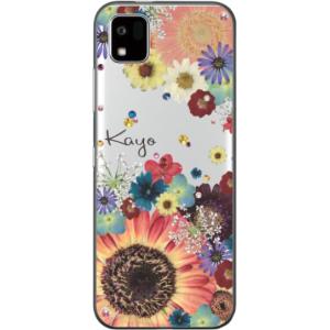 - かんたんスマホ3 ケース A205KC カバー ラインストーン かわいい フラワー 花柄 らふら 名入れ 押し花風 フラワーアレンジカラフル