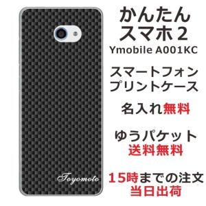 - かんたんスマホ2 ケース A001kc カバー らふら 名入れ カーボン ブラック