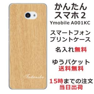 - かんたんスマホ2 ケース A001kc カバー らふら 名入れ ウッドスタイル