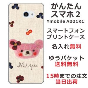 - かんたんスマホ2 ケース A001kc カバー らふら 名入れ フェルト風プリント ベア ピンク