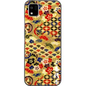 - かんたんスマホ3 ケース A205KC カバー らふら 名入れ 和柄 和花パッチワーク