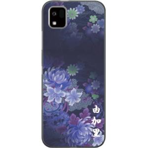 - かんたんスマホ3 ケース A205KC カバー らふら 名入れ 和柄 和花青紫グラデ