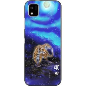 - かんたんスマホ3 ケース A205KC カバー らふら 名入れ 和柄 蒼月虎