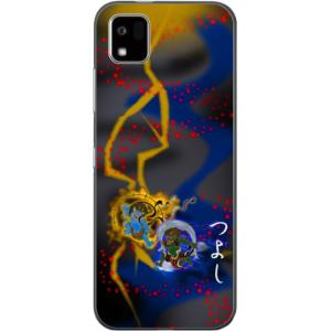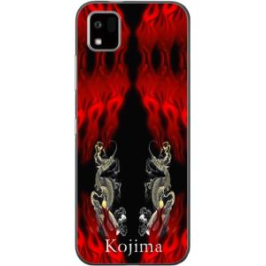 - かんたんスマホ3 ケース A205KC カバー らふら 名入れ 和柄 炎闇双龍