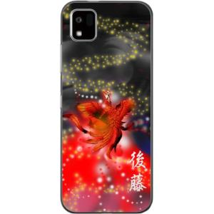 - かんたんスマホ3 ケース A205KC カバー らふら 名入れ 和柄 鳳凰黒