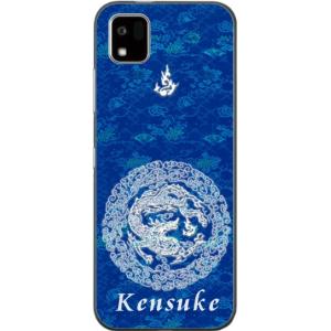 - かんたんスマホ3 ケース A205KC カバー らふら 名入れ 和柄 円龍青
