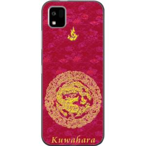- かんたんスマホ3 ケース A205KC カバー らふら 名入れ 和柄 円龍赤