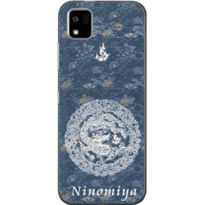 - かんたんスマホ3 ケース A205KC カバー らふら 名入れ 和柄 円龍深青