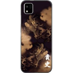 - かんたんスマホ3 ケース A205KC カバー らふら 名入れ 和柄 黄金雲海龍
