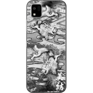 - かんたんスマホ3 ケース A205KC カバー らふら 名入れ 和柄 水墨双龍