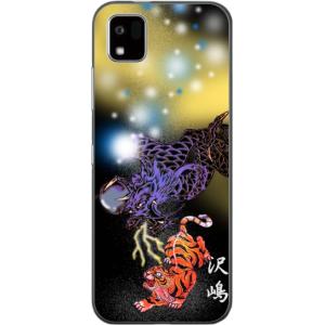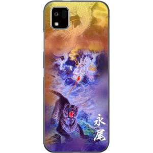 - かんたんスマホ3 ケース A205KC カバー らふら 名入れ 和柄 龍虎蒼橙