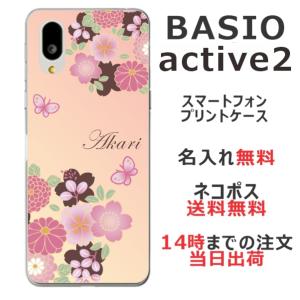- BASIO Active2 SHG12 ベイシオアクティブ2 らふら 名入れ スマホケース 和柄 花 サクラ