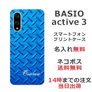 - BASIO active3 KYG04 ベイシオアクティブ3 らふら 名入れ スマホケース メタル ブルー