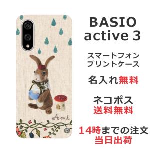 - BASIO active3 KYG04 ベイシオアクティブ3 らふら 名入れ スマホケース 雨降りうさぎ
