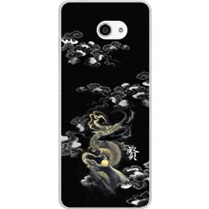 - かんたんスマホ2+ ケース A001KC カバー らふら 名入れ 和柄 漆黒雲海龍