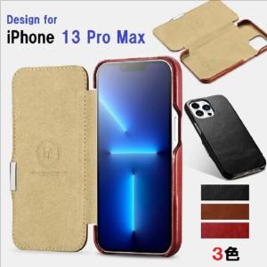 iCARER iPhone 13 Pro Max 6.7inch 用 手帳型 ビンテージ レザー マグネット吸着 本革ケース Side-open 黒
