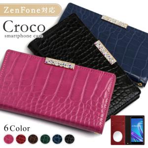 ZenFone Max Pro M1 ZB602KL ケース 手帳型 おしゃれ ブランド スマホケース 全機種対応 android ゼンフォンマックス simフリー ミラー付き クロコ調 カード収納
