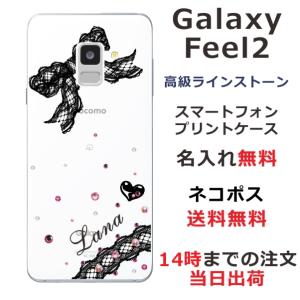 - Galaxy Feel2 ケース SC-02L ギャラクシーフィール2 カバー ラインストーン かわいい らふら 名入れ レースリボン