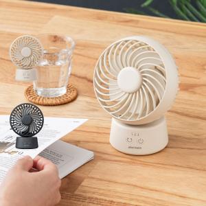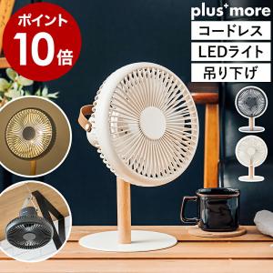 - ミニリビングファン LEDライト付 扇風機 デスク コンパクト 卓上 吊り下げ コードレス 充電式 オートオフ USB おしゃれ PBAF003 plus more