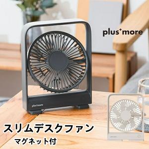 - スリムデスクファン マグネット付 PBAF002 plusmore プラスモア 扇風機 コードレス 首振り 充電式 季節 空調家電 サーキュレーター
