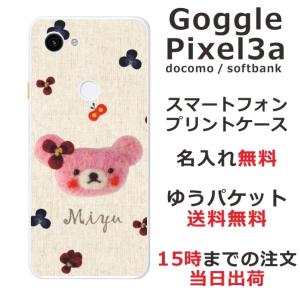- Google Pixel3a ケース グーグルピクセル3a カバー らふら 名入れ フェルト風 ベア ピンク