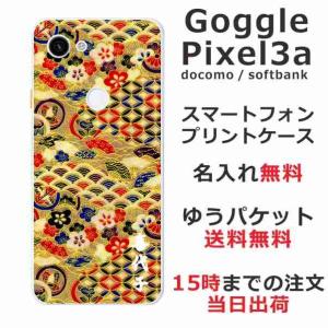 - Google Pixel3a ケース グーグルピクセル3a カバー らふら 名入れ 千代紙柄ゴールド