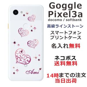 - Google Pixel3a ケース グーグルピクセル3a カバー ラインストーン かわいい らふら 名入れ グラデ ハート