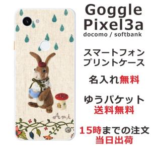 - Google Pixel3a ケース グーグルピクセル3a カバー らふら 名入れ 雨降り うさぎ