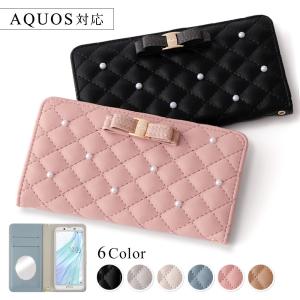 AQUOS U SHV37 ケース 手帳型 おしゃれ ブランド スマホケース 全機種対応 android リボン アクオス スマホカバー ミラー付き 鏡付き カード収納 ベルトなし