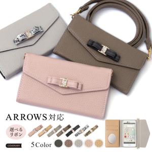 ARROWS SV F-03H ケース 手帳型 ショルダー おしゃれ ミラー付き ブランド スマホケース 全機種対応 android リボン アローズsv F03H ドコモ 富士通 カバー