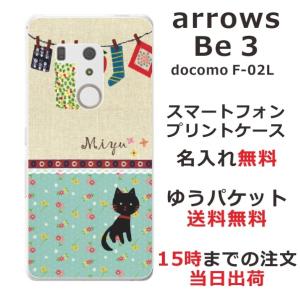 - arrows Be3 ケース F-02L アローズBe3 カバー らふら 名入れ 黒猫 洗濯物